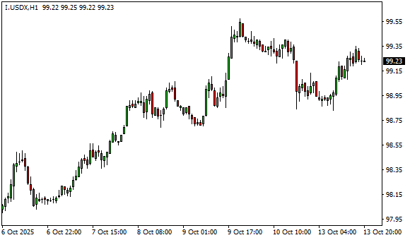 Vývoj dolarového indexu USDX (1hodinový graf - H1):