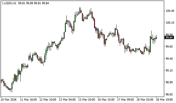Vývoj dolarového indexu USDX (1hodinový graf - H1):