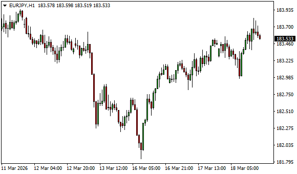 Vývoj měnového páru EUR/JPY (1hodinový graf - H1):