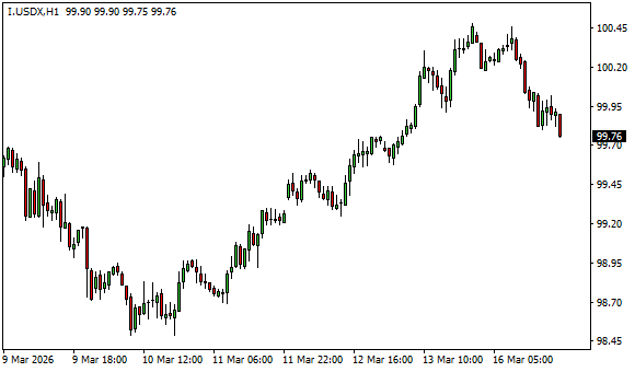 Vývoj dolarového indexu USDX (1hodinový graf - H1):