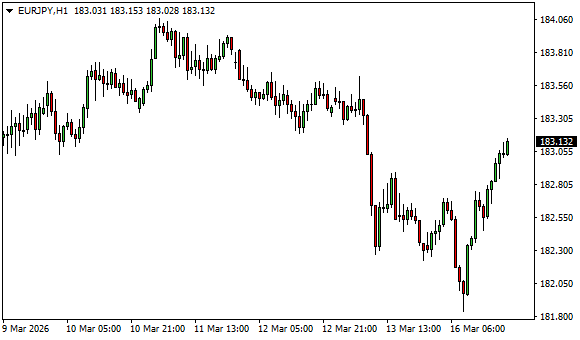 Vývoj měnového páru EUR/JPY (1hodinový graf - H1):