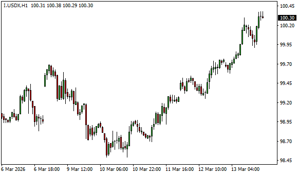 Vývoj dolarového indexu USDX (1hodinový graf - H1):
