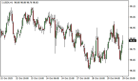 Vývoj dolarového indexu USDX (1hodinový graf - H1):
