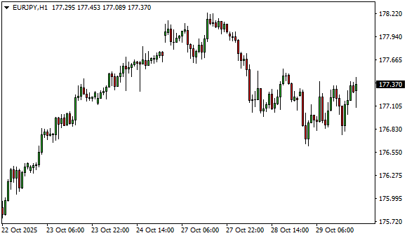 Vývoj měnového páru EUR/JPY (1hodinový graf - H1):