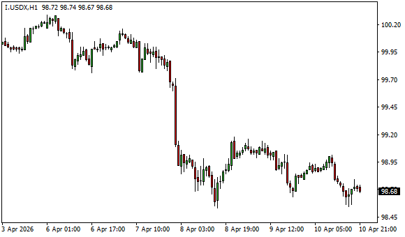 Vývoj dolarového indexu USDX (1hodinový graf - H1):