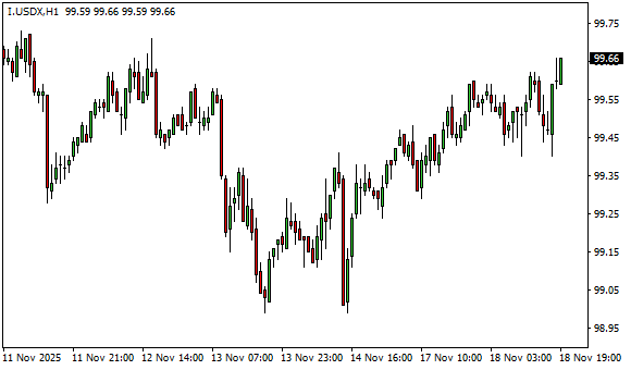 Vývoj dolarového indexu USDX (1hodinový graf - H1):