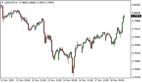 Vývoj měnového páru USD/CHF (1hodinový graf - H1):