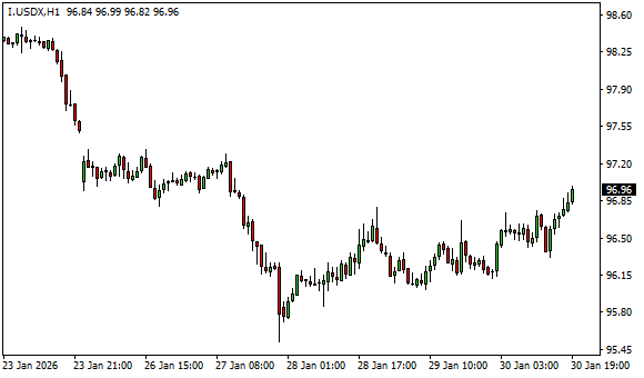 Vývoj dolarového indexu USDX (1hodinový graf - H1):
