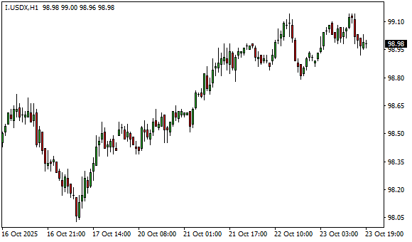 Vývoj dolarového indexu USDX (1hodinový graf - H1):