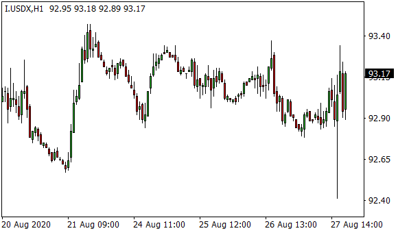 Vývoj dolarového indexu USDX (1hodinový graf – H1):