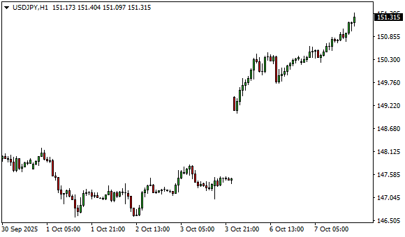 Vývoj měnového páru USD/JPY (1hodinový graf - H1):