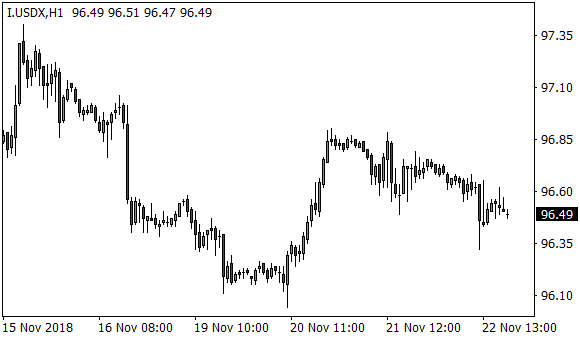 Vývoj dolarového indexu USDX (1hodinový graf – H1):