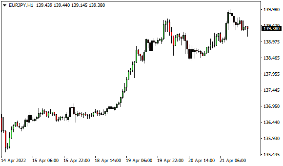 Vývoj měnového páru EUR/JPY (1hodinový graf - H1):