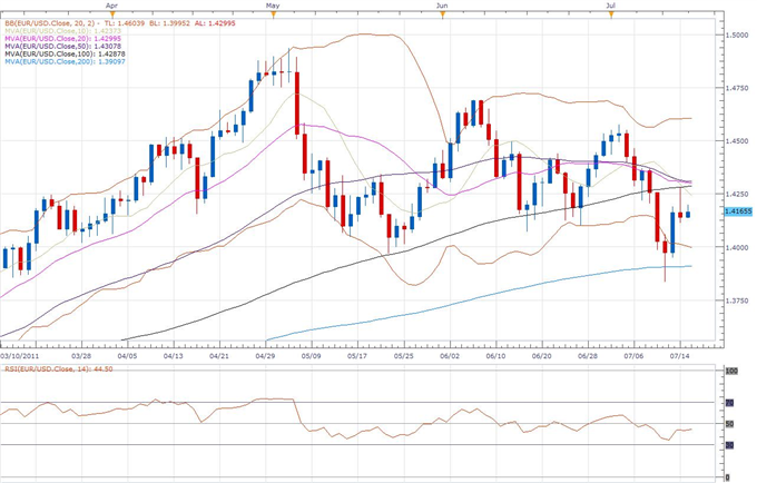 EUR/USD: Cenový pohyb je stále poměrně medvědí a držíme se názoru, že je vhodný hledat vstupy do krátké pozice. Na trhu je 200 denní SMA a tento dlouhodobější klouzavý průměr se nachází na hodnotě 1,3900 a jeho zřetelné prolomení by mohlo otevřít prostor až k dalšímu důležitému supportu na 1,3750. Mezitím nás také zajímá zdali trh vytvoří nový nižší vrchol pod hladinou 1,4400. Na včerejších maximech se utvořila konfluence více klouzavých průměrů přesně pod 1,4300. A právě toto by mohl být nižší vrchol. Zatím vyčkáváme na jasnější potvrzení.