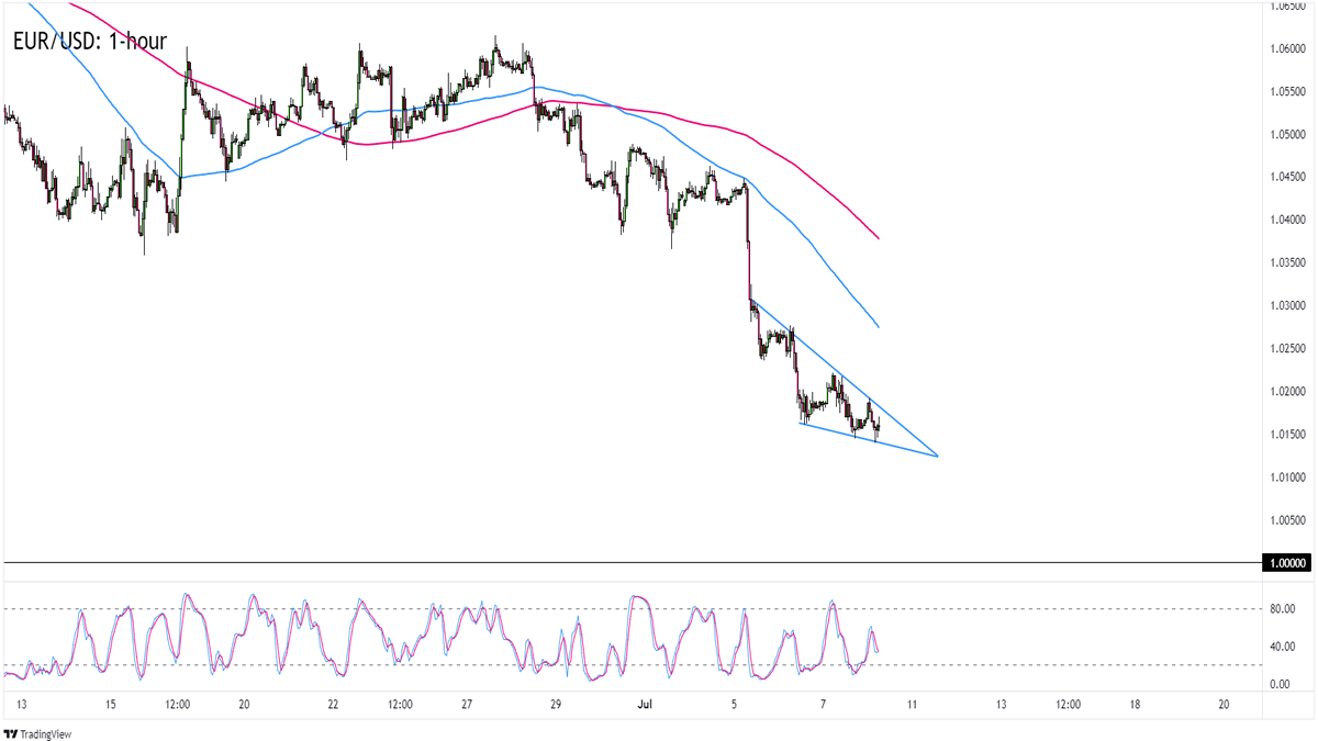 Forex: EUR/USD se obchoduje v klesající klínové formaci