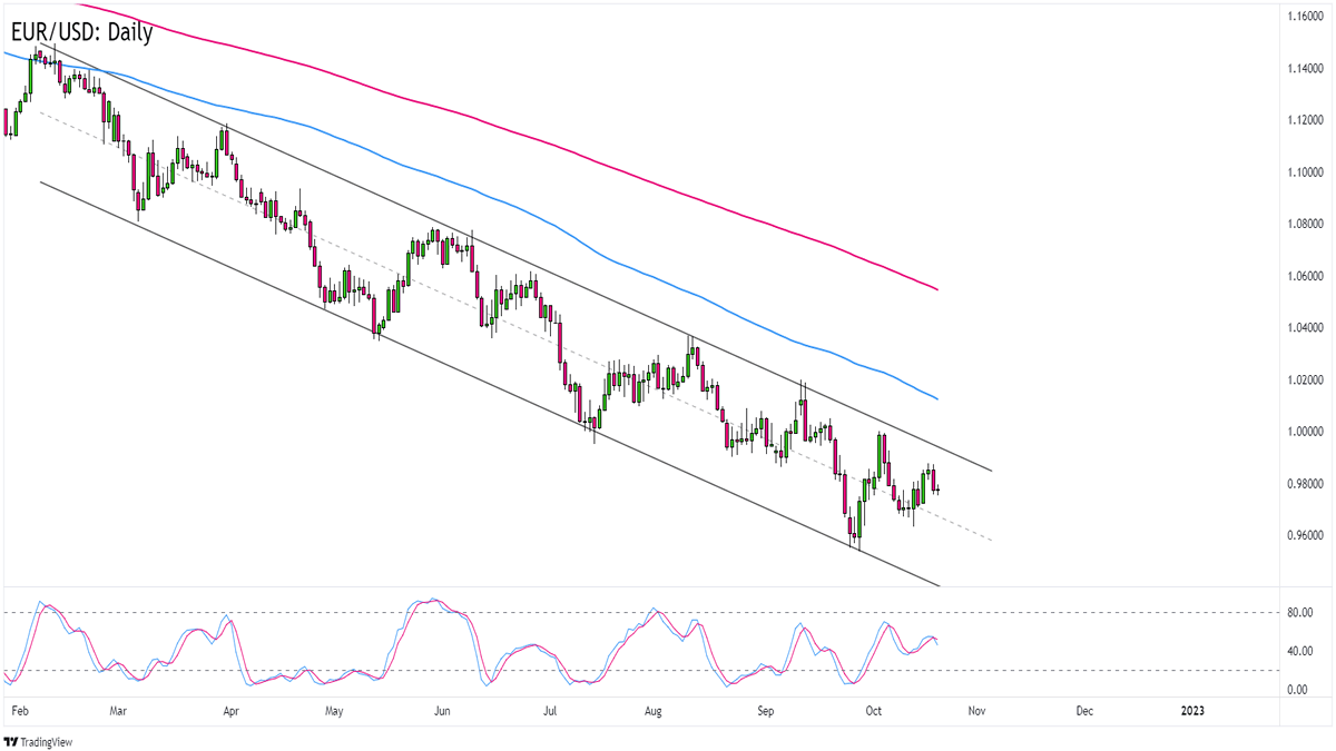 Forex: EUR/USD se obchoduje v klesajícím trendovém kanálu