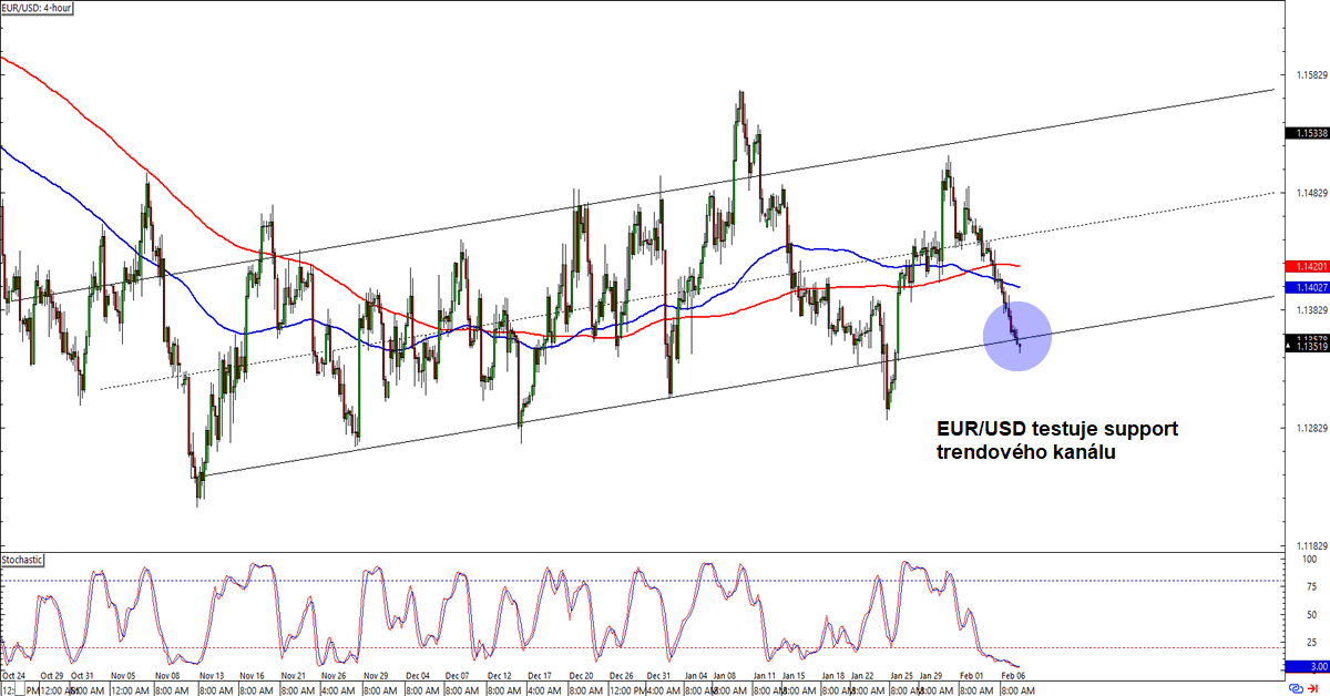 Forex: EUR/USD testuje support trendového kanálu