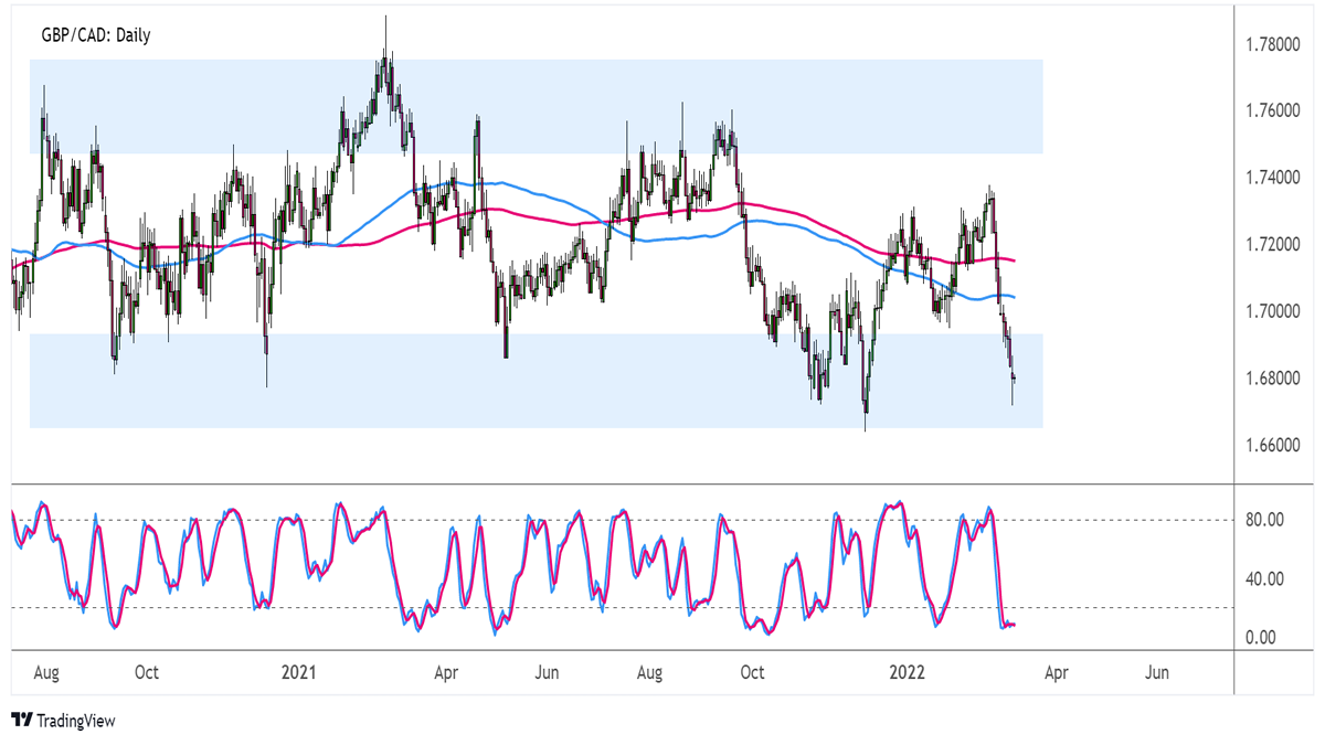 Klíčová slova: FOREX | GBP/CAD | Indikátor | Měnový pár | Stochastic | Support | CAD | GBP | Babypips | Graf | Vývoj měnového páru | Indikátor Stochastic | Denní graf | Přeprodané podmínky | Vývoj | Vyčerpanost medvědů | Prolomení supportu |