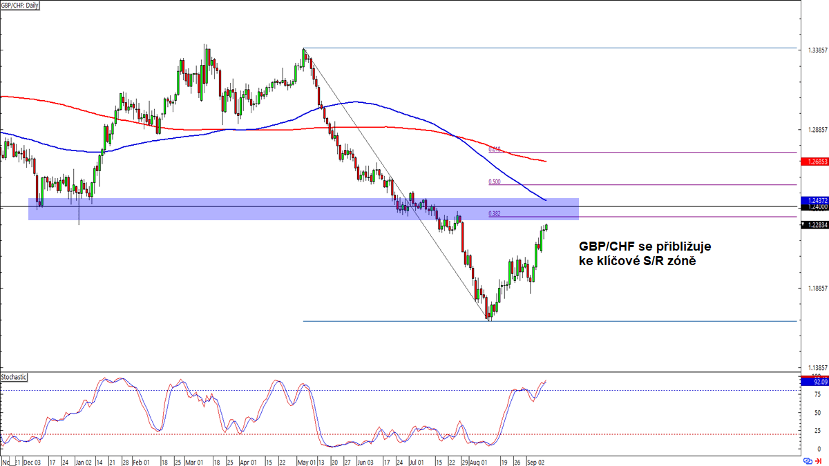 Forex: GBP/CHF se přibližuje ke klíčové S/R zóně
