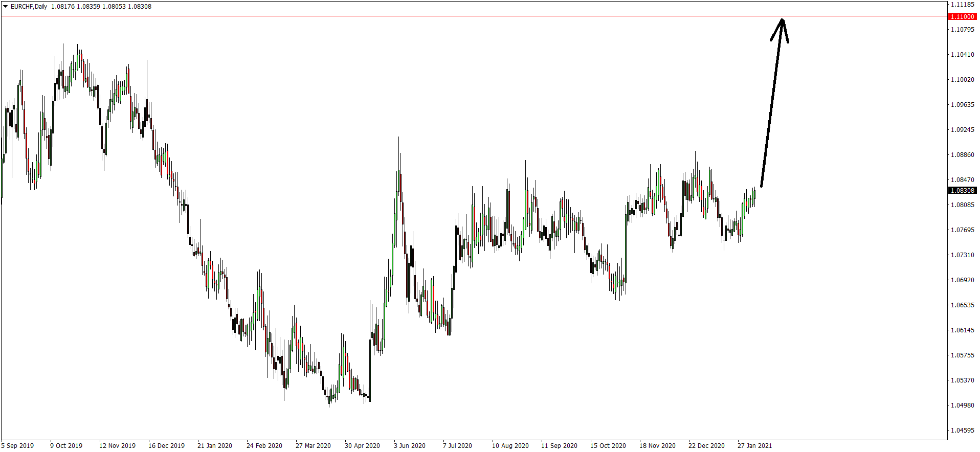 Vývoj měnového páru EUR/CHF (denní graf - D1):