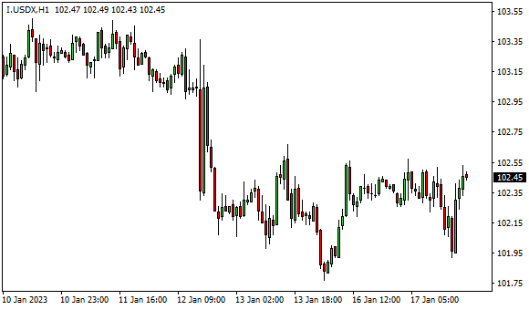 Vývoj dolarového indexu USDX (1hodinový graf - H1):