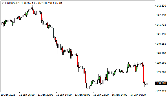 Vývoj měnového páru EUR/JPY (1hodinový graf - H1):
