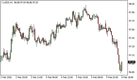 Vývoj dolarového indexu USDX (1hodinový graf - H1):