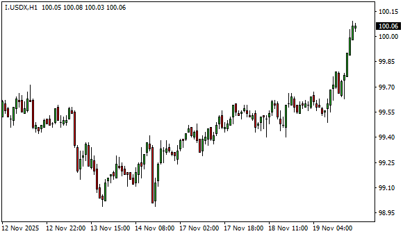 Vývoj dolarového indexu USDX (1hodinový graf - H1):