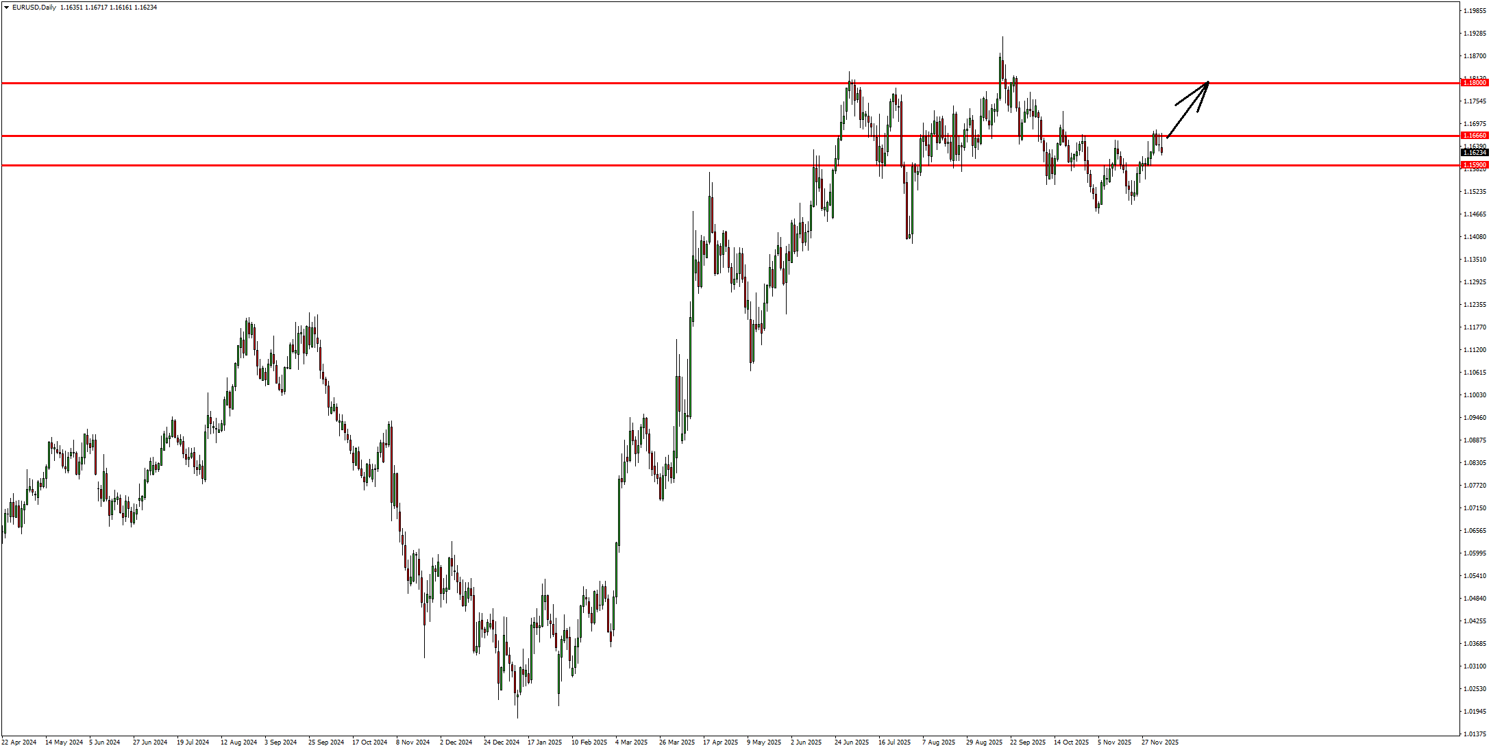 Vývoj měnového páru EUR/USD (denní graf - D1):
