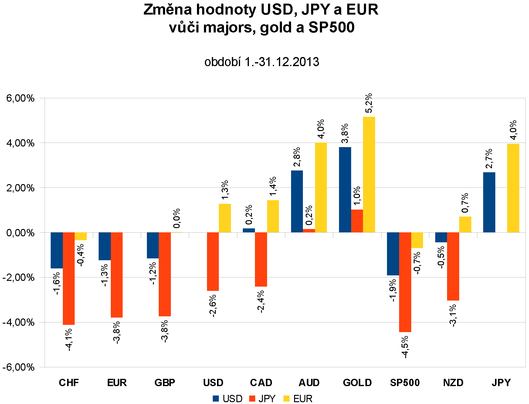 V prosinci „Santa Claus rally“ vynesla do čela žebříčku akciový index SP500 následovaný evropskými majors měnami. Nejvýraznější oslabení prodělalo zlato následované japonským jenem a australským dolarem.