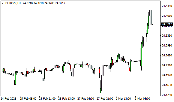 Vývoj měnového páru EUR/CZK (1hodinový graf - H1):