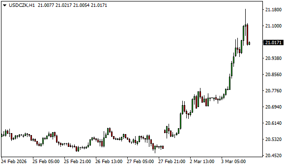 Vývoj měnového páru USD/CZK (1hodinový graf - H1):