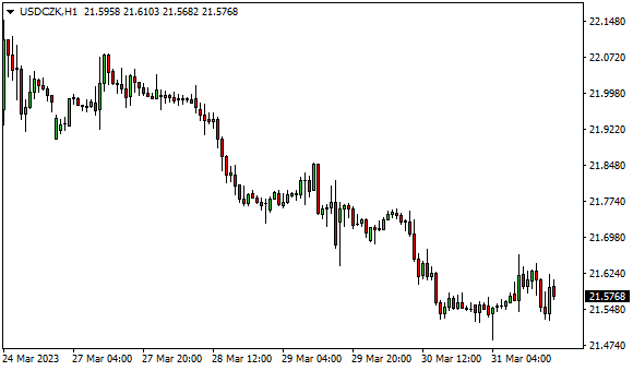 Vývoj měnového páru USD/CZK (1hodinový graf - H1):