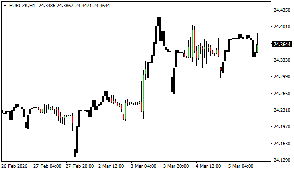 Vývoj měnového páru EUR/CZK (1hodinový graf - H1):