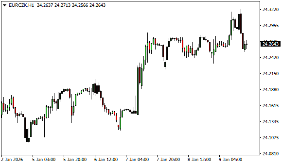 Vývoj měnového páru EUR/CZK (1hodinový graf - H1):
