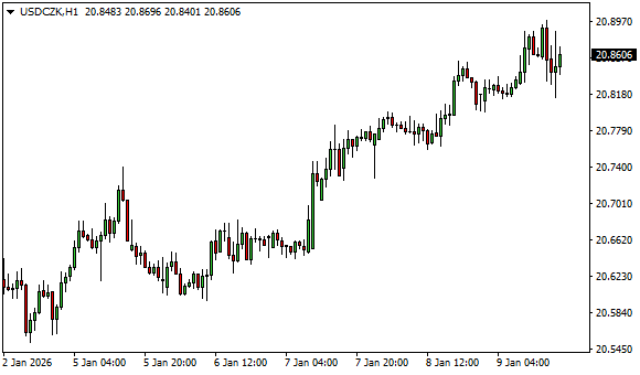 Vývoj měnového páru USD/CZK (1hodinový graf - H1):
