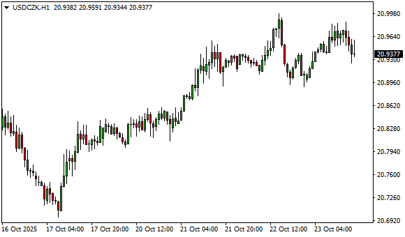 Vývoj měnového páru USD/CZK (1hodinový graf - H1):