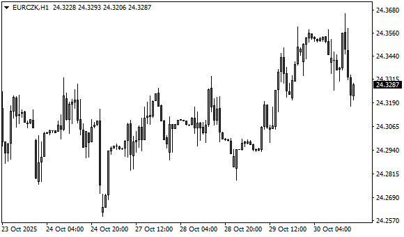 Vývoj měnového páru EUR/CZK (1hodinový graf - H1):