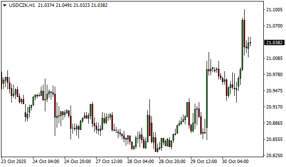 Vývoj měnového páru USD/CZK (1hodinový graf - H1):