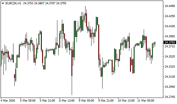 Vývoj měnového páru EUR/CZK (1hodinový graf - H1):