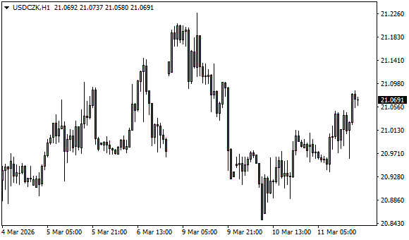 Vývoj měnového páru USD/CZK (1hodinový graf - H1):