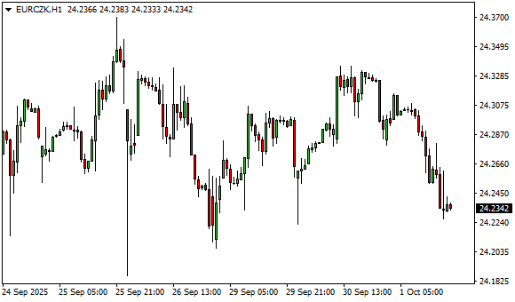 Vývoj měnového páru EUR/CZK (1hodinový graf - H1):