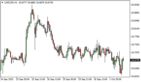 Vývoj měnového páru USD/CZK (1hodinový graf - H1):