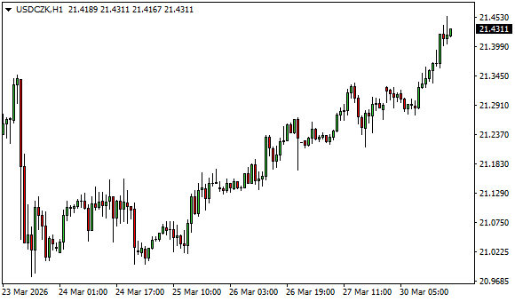 Vývoj měnového páru USD/CZK (1hodinový graf - H1):