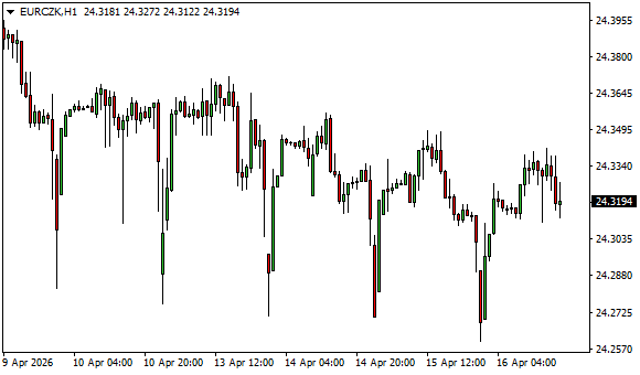 Vývoj měnového páru EUR/CZK (1hodinový graf - H1):