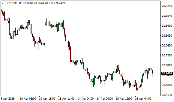 Vývoj měnového páru USD/CZK (1hodinový graf - H1):