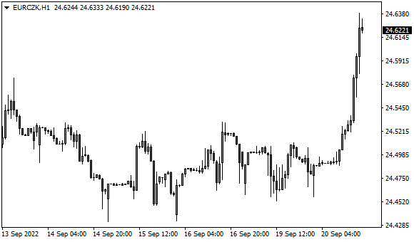 Vývoj měnového páru EUR/CZK (1hodinový graf - H1):
