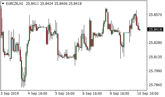 Vývoj měnového páru EUR/CZK (1hodinový graf - H1):