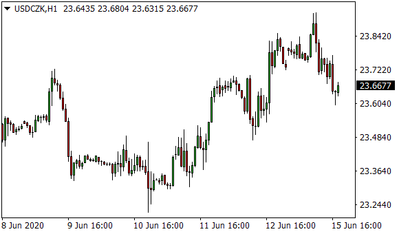 Vývoj měnového páru USD/CZK (1hodinový graf - H1):