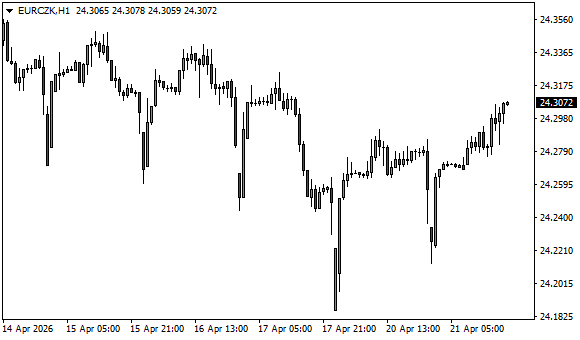 Vývoj měnového páru EUR/CZK (1hodinový graf - H1):